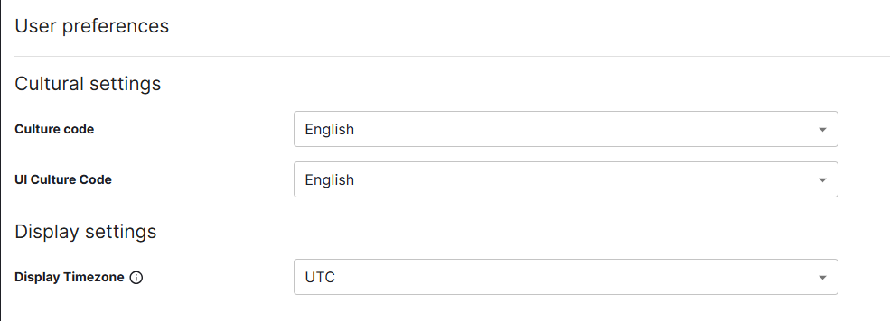 User preferences generally control the language of, and how dates and numbers are displayed in the UI . They are managed in the User Preferences page.